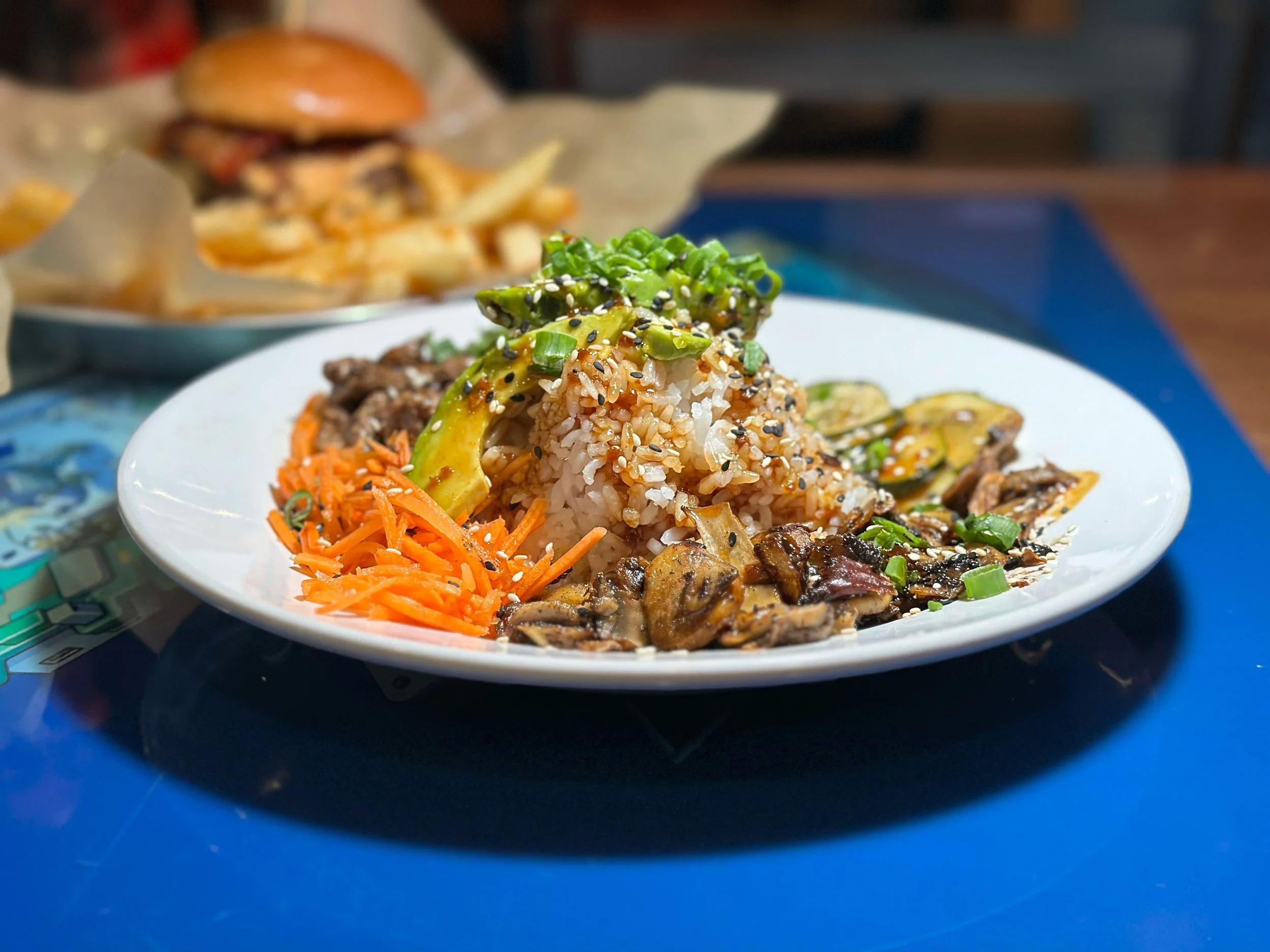 Item Description: Our Cowboy Bibimbap combines tender marinated beef, fresh vegetables, a fried egg, and spicy gochujang sauce, all served over steamed rice. A hearty and delicious fusion dish.