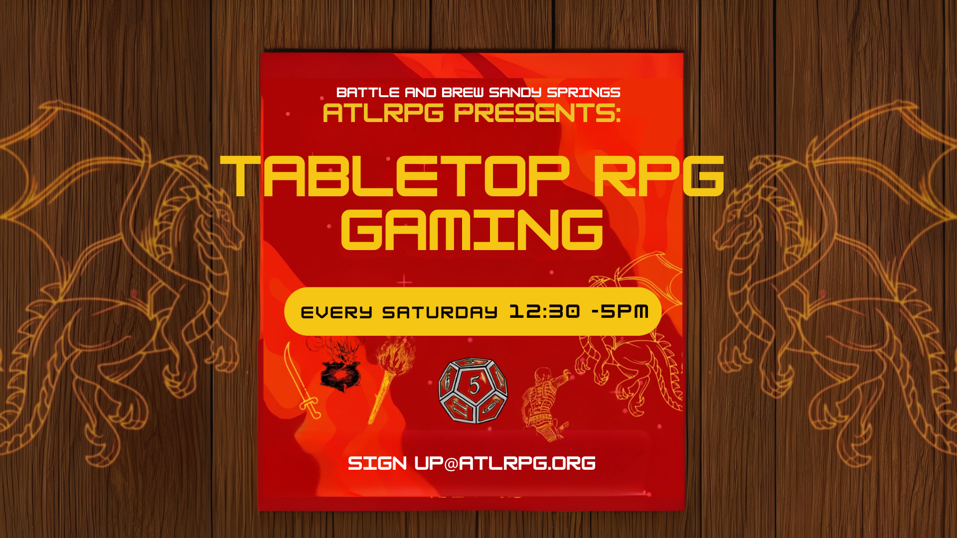 Hail, adventurers! Whether you’ve got a +3 Charisma or don’t know your d20 from a dinner roll, Saturday is your day. We’ve teamed up with the legendary crew at ATLRPG to bring you weekly Tabletop RPG meetups right here at Battle & Brew.