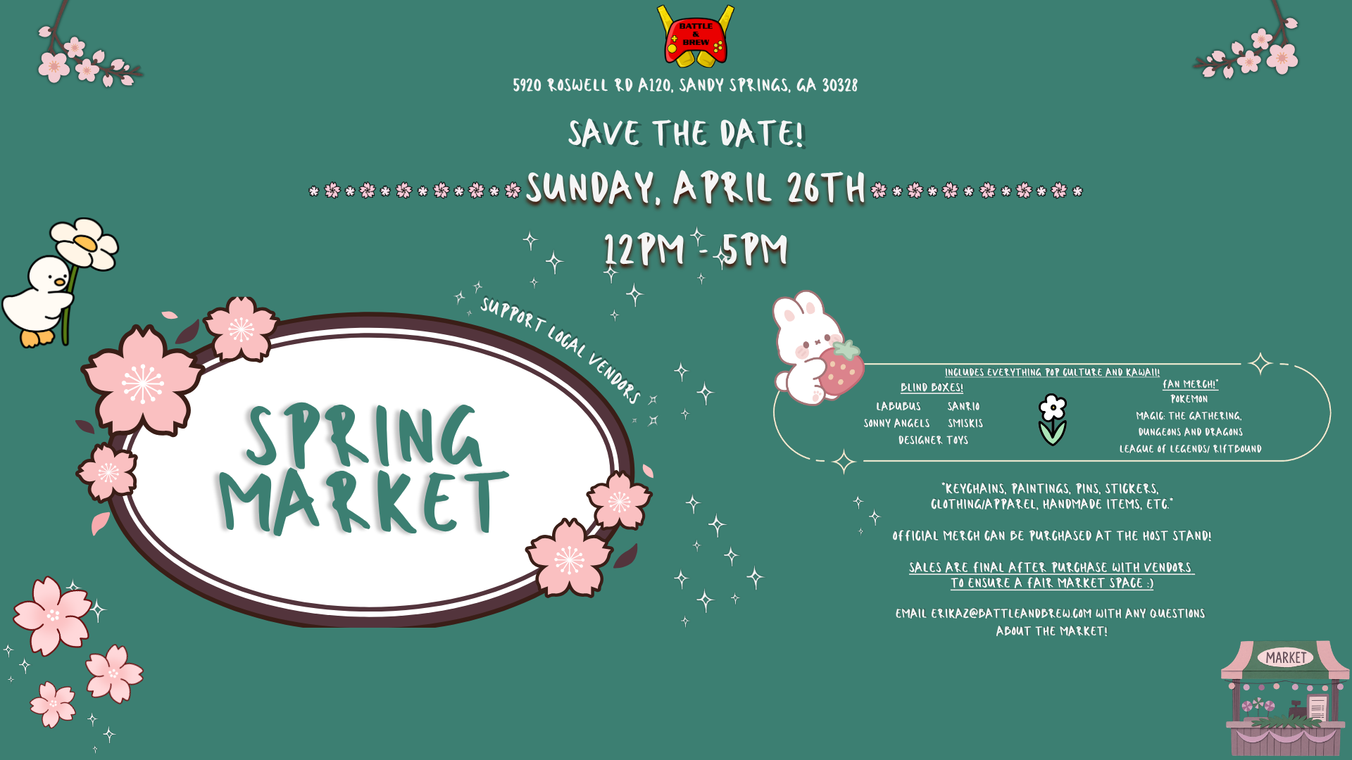 Step into a world of collectibles, creativity, and community at our Spring Market, the BNB way. ๐ท Join us for an afternoon where local artists, collectors, and fandom vendors take over the space, bringing everything from blind box treasures and kawaii collectibles to tabletop-inspired art and convention-style merch.