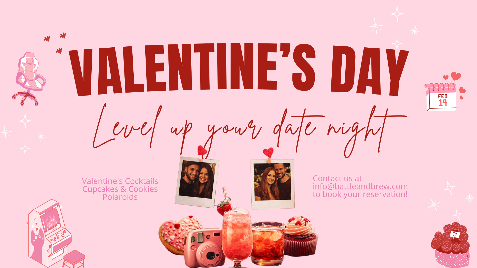 Expect romantic vibes with a nerdy twist, great food and drinks, and a relaxed atmosphere designed for connection, laughter, and a little friendly competition. Whether you’re gaming, hanging out, or just soaking in the vibes, this is Valentine’s done the Battle & Brew way.